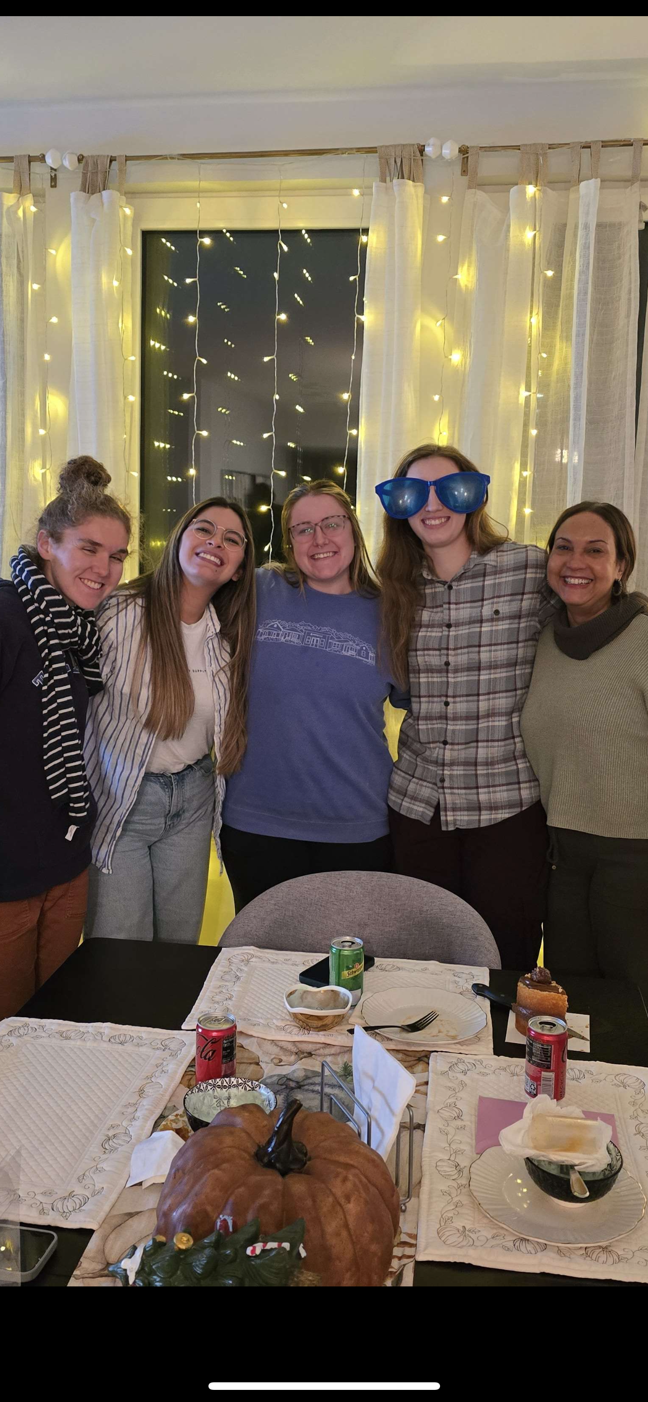 Week seven had a lot of little moments that were sweet but friendsgiving at my place definitely was one of my favorite memories for the week! And honestly a nice way to wrap the weekend up. I invited Nadine, Camillia, and Tianna over. The funniest part of the evening was the cooking situation. My kitchen has a pretty basic set up of two burners and a microwave and very limited dishes. However we still decided on having a traditional thanksgiving meal! It honestly was a fun challenge and the Lord truly helped me piece together things as the cooking was happening. When it was all said and done we had a good chunk of traditional thanksgiving favorites!! And surprisingly the microwave still worked lol! We had turkey, stuffing, mashed potatoes, gravy, corn, green bean casserole, Mac and cheese, rolls, olives, cranberry sauce, a veggie tray and chocolate cream pie for dessert! The sweetest part was knowing that it was the first thanksgiving ever for two of the girls Nadine and Tianna. And for Camillia it was I believe her second thanksgiving ever. She celebrated last year as well. Watching them try everything, especially the dishes they had never heard of before made the whole night even more special! Their reactions were so fun and honestly it just felt like such a gift to share something familiar with them! Other than the food we had really great conversations and lots of good laughs and the whole evening was just nice! I am truly grateful for the friendships God is building in this season! Sitting around the table at friendsgiving was such a sweet reminder that the Lord is really intentional about who he puts in our lives and when! Yeah it just feels like and is such a gift from the Lord!